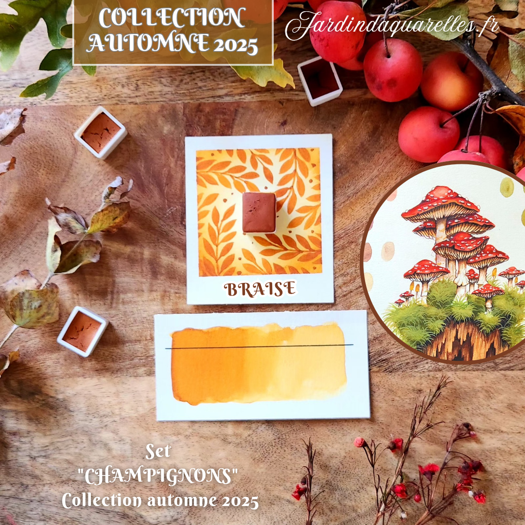 Braise est une aquarelle artisanale de la collection automne, elle est donc éphémère. Elle est présente dans le set "CHAMPIGNONS" et dans la grande palette "COCOONING PALETTE ".