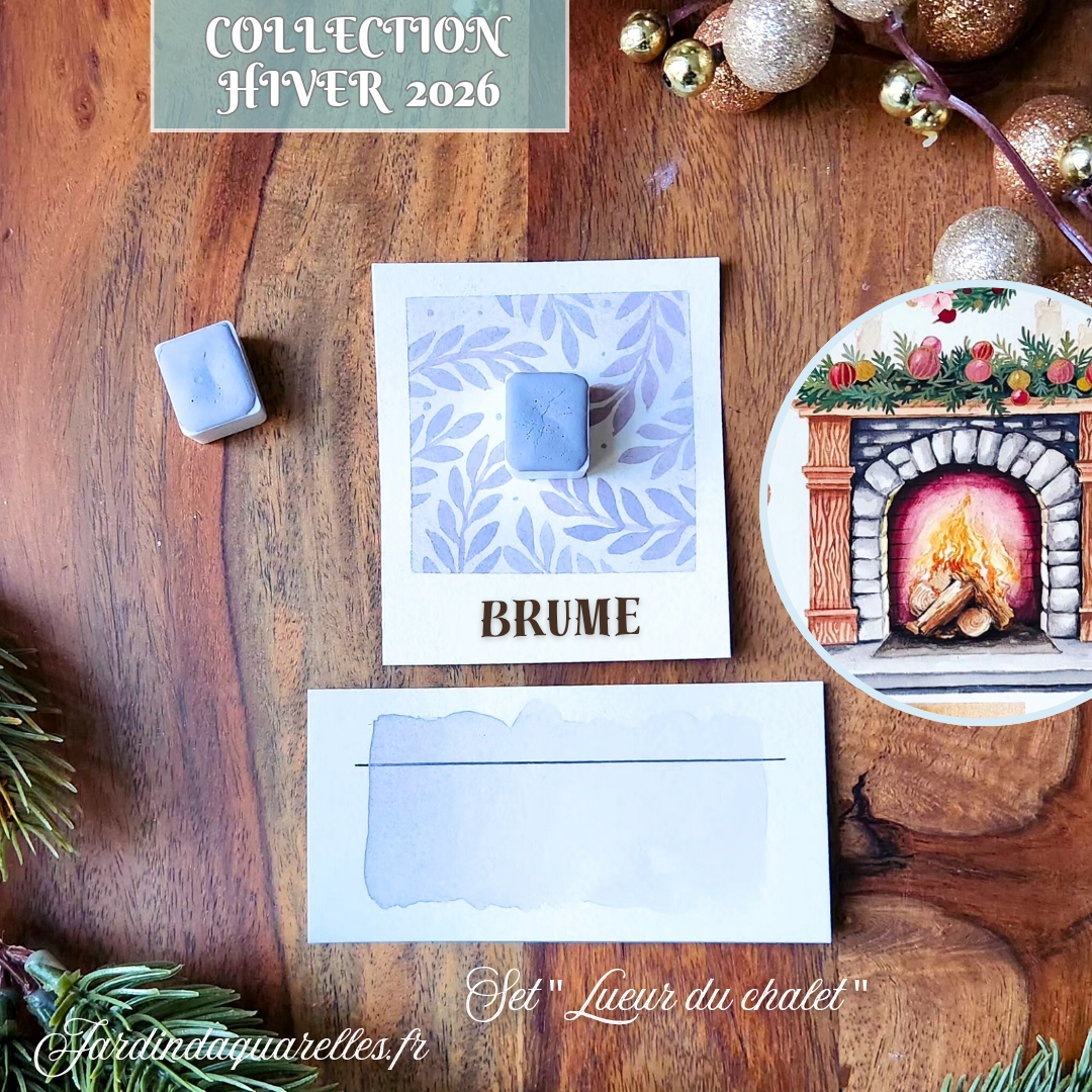 BRUME est une aquarelle présente dans le set "LUEUR DU CHALET ", c'est une teinte de la collection hiver 2026 elle est donc éphémère