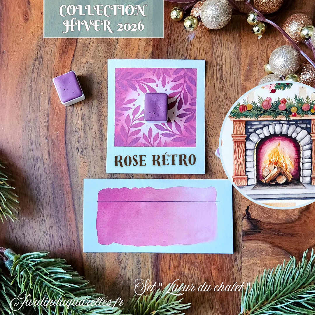ROSE RÉTRO est une aquarelle présente dans le set "LUEUR DU CHALET ", c'est une teinte de la collection hiver 2026 elle est donc éphémère