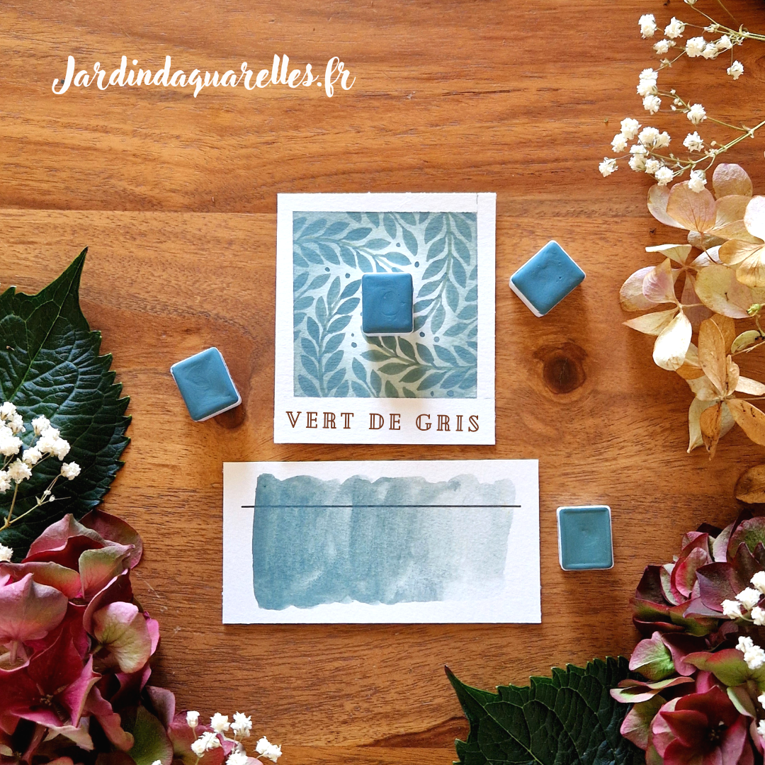Vert de gris, aquarelle artisanale, demi-godet